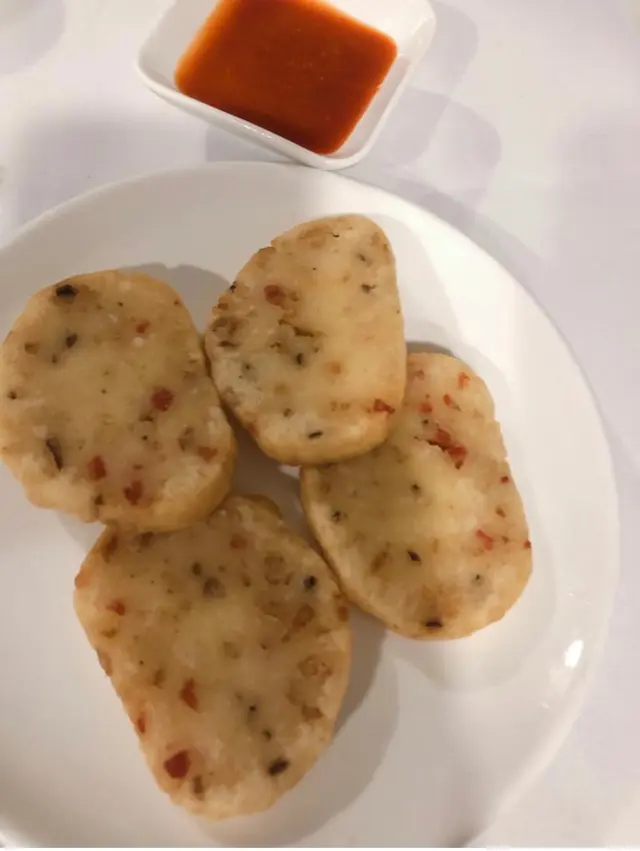 呢個有少少似蘿蔔糕嘅物體,但係硬身少少,外皮係煎到脆既,點埋佢哋自家製嘅辣椒醬一齊食,都唔錯嘅💛