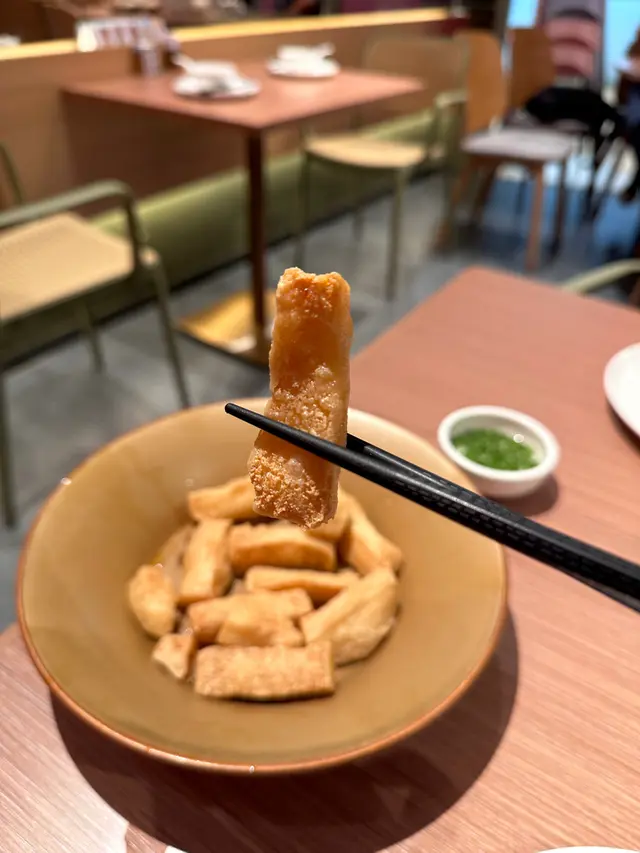 炸豆乾外酥內嫩,雞汁的加入使這道菜更加美味,增添了濃郁的香氣。口感上也有層次感,既有脆的外皮,又有柔韌的內裡,是絕佳的小吃選擇。