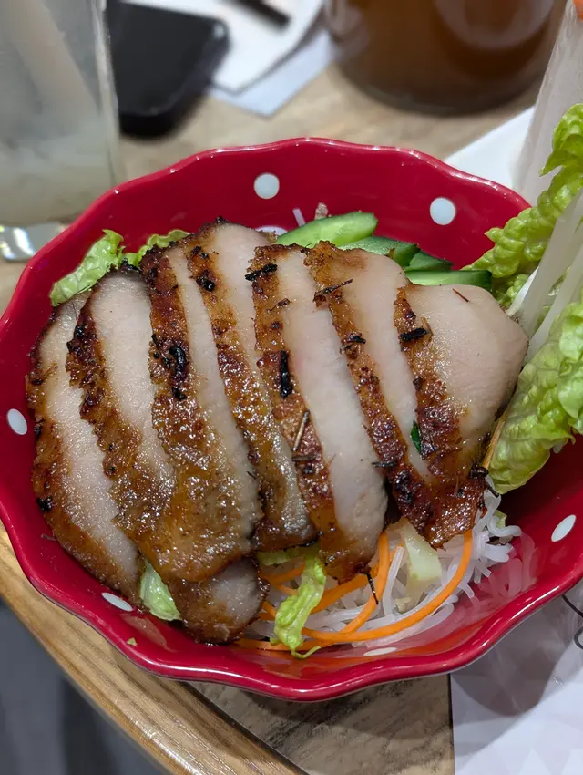 豬頸肉撈檬豬頸肉爽口彈牙,檬粉幼滑,撈埋魚露、青檸汁同香草,酸辣開胃。