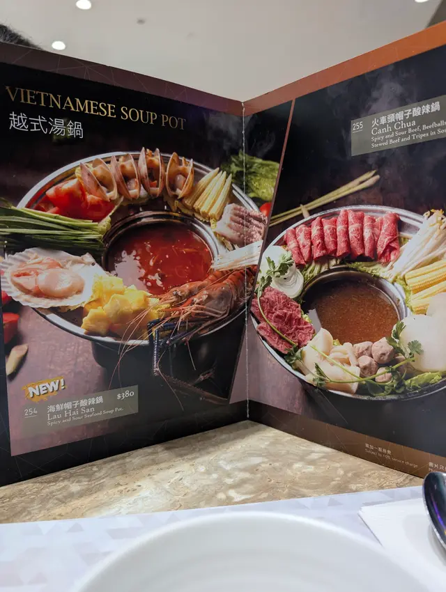 火車頭鍋湯底鮮甜濃郁,配料有齊生牛肉 (雪花 吊龍 匙柄 牛肉片)、牛丸、牛柏葉,仲有芽菜同蘿蔔,份量十足。追加左通菜同粟米旬索盡湯汁,更加入味。