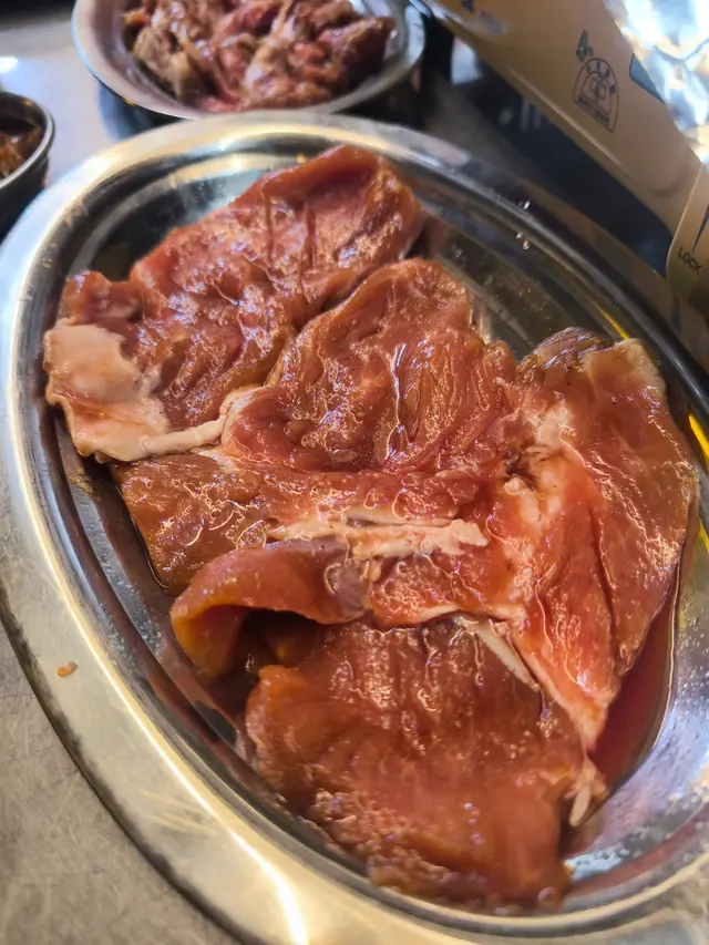 全部肉都醃得好入味,燒完之後又淋又香,完全唔似特價貨。識食一定係用生菜包住,加埋泡菜同醃菜,解膩之餘仲更加惹味!