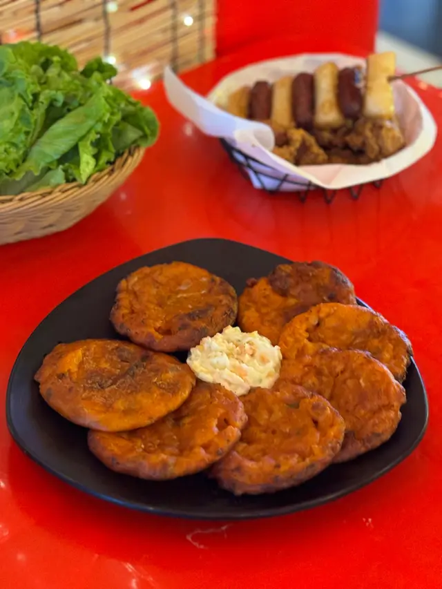 呢個泡菜餅都有6、7塊,圓餅嘅外表同平時見開嘅有啲唔同,食落又幾重泡菜味,又唔會好辣, 中間仲有一小球忌廉薯蓉,都幾好食家