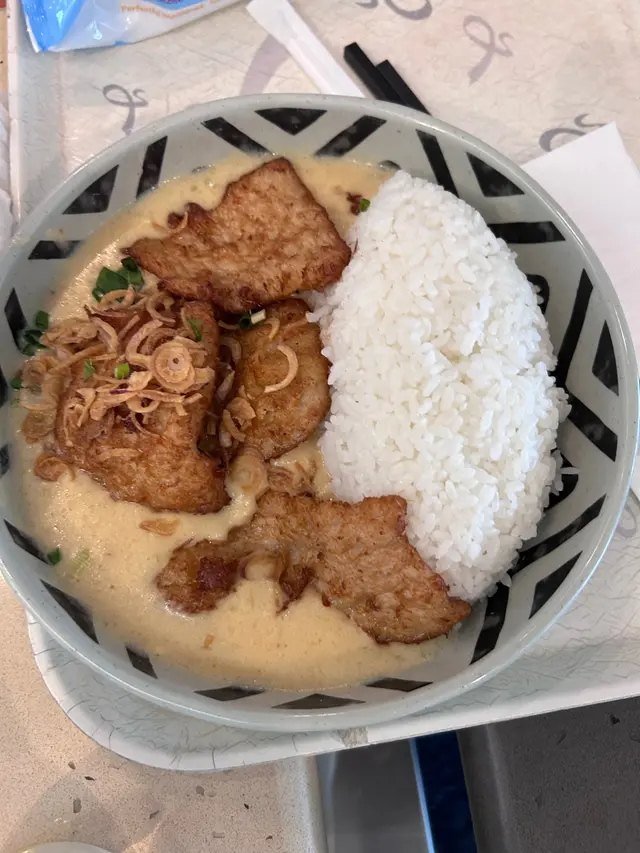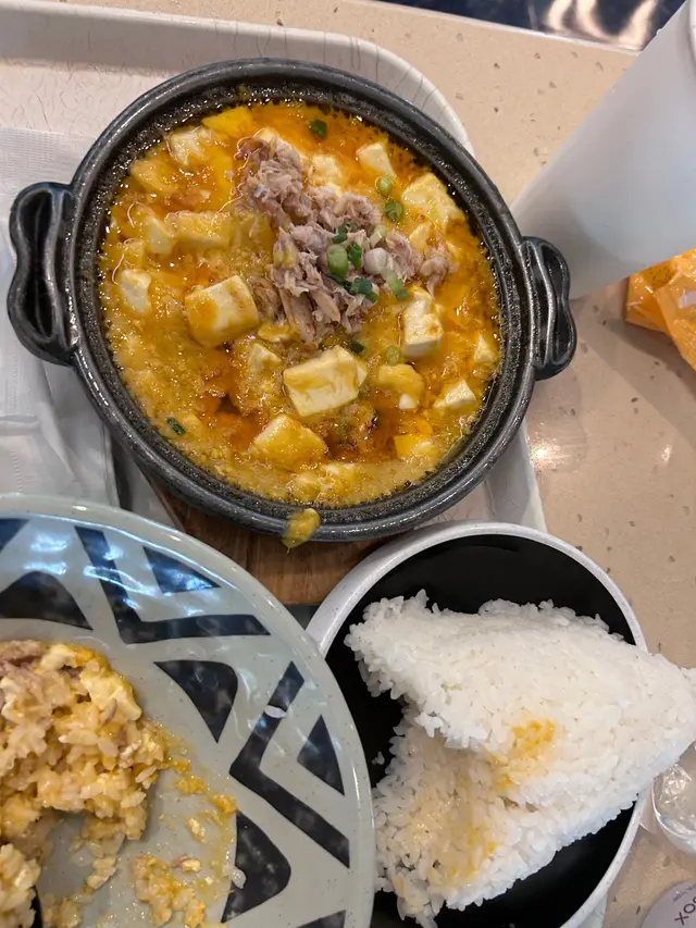 我哋叫咗白咖喱豬扒飯同埋蟹粉豆腐鍋