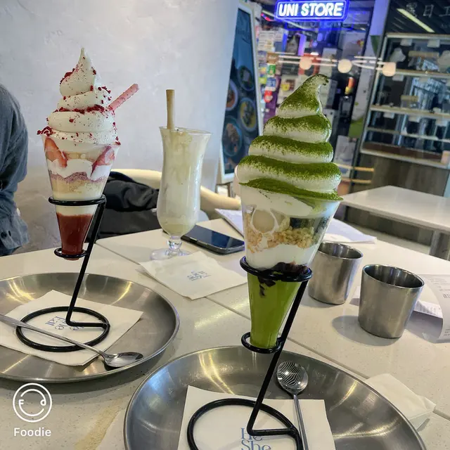 甜品時間,特濃5.0牛乳軟雪糕芭菲抹茶和士多啤梨,層層疊疊,像我們共同經歷的歲月。抹茶的微苦與士多啤梨的酸甜,正如青春裡的歡笑與淚水,交織成難忘的回憶。大家邊品嚐,邊翻看舊相片,笑著回憶那些年一起追夢的日子。
