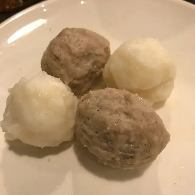 手剁豬肉丸同手剁墨魚丸一人兩細粒,都幾彈牙同埋食得出係正宗手剁,唔錯。
