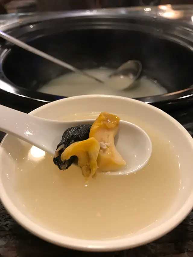 大連鮑魚蒸咗之後好細隻,加咗啲蟲草花上去但係冇乜味,蒸得有啲耐所以非常之韌。