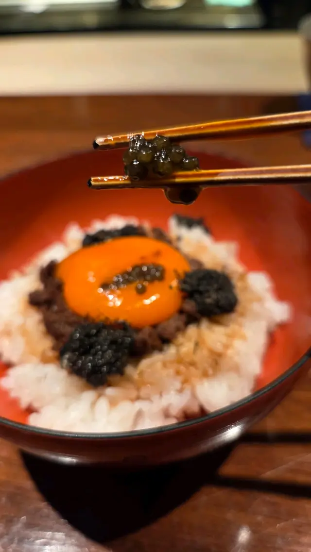 2. 燒免治雞月見蛋,這個免治雞很有咬口,因雞軟骨包含在內,令到整個質感很爽口,將雞串沾上鮮蛋黃,感覺很豐沃,很圓滿😊,只可惜個醬油有點鹹😄