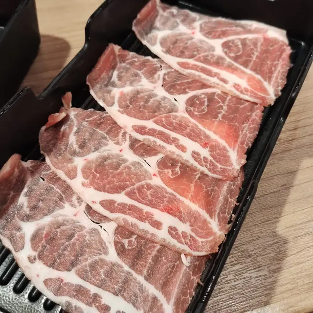 西班牙伊比利亞黑毛豬:豬肉切片厚薄適中,脂肪潔白且融點極低。涮煮之後,肉質表現得醇厚且富有彈性,不像普通豬肉般鬆散。它在提供豬肉的甜美之餘,更帶有特有的橡果和鹹香層次!👍👍👍