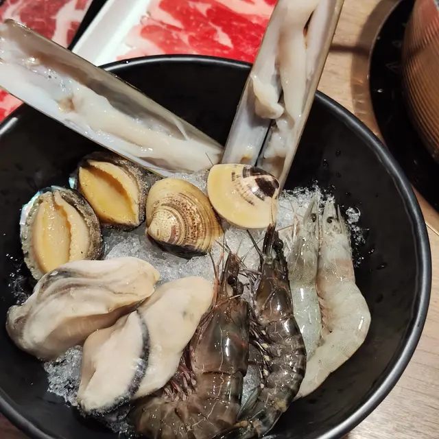 升級海鮮:蟶子皇肉質肥厚,入口鮮甜;鮑魚彈牙爽口,口感極富韌性;廣島蠔則以其飽滿的蠔肉和濃郁的海洋氣息征服味蕾。搭配九節蝦和游水海蝦,它們展現出活蝦特有的緊實肉質和清甜。多樣化的海鮮不僅提供了豐富的口感變化,更將海洋的鮮甜精華融入到湯底之中,讓整個火鍋體驗從味覺到視覺都得到了極致的升華!❤️❤️❤️