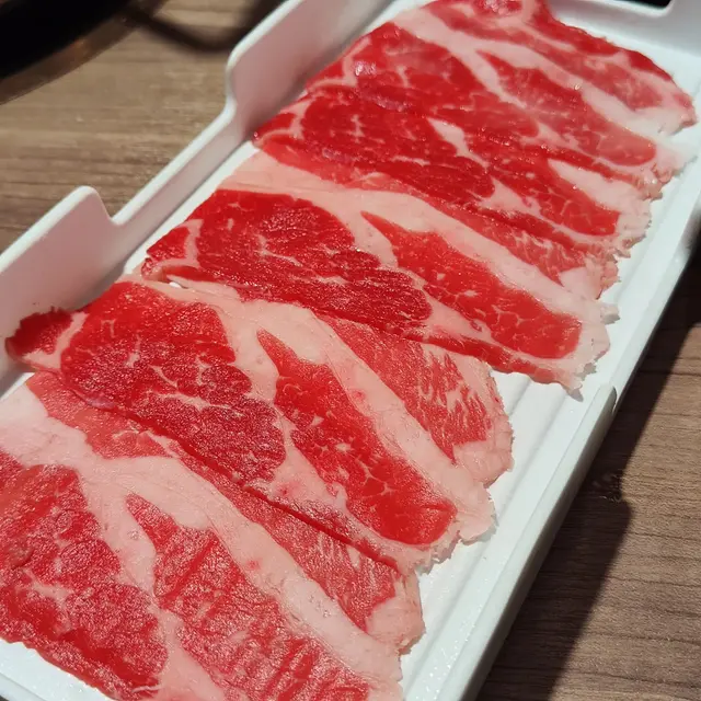 美國Prime Grade 極上牛頸脊:油花分佈極為細密均勻,呈現出大理石般的精美紋理。只需輕涮幾秒,肉片邊緣微捲即可享用。入口後,豐沛的牛油香氣瞬間充盈口腔,肉質展現出極致的軟嫩和化口,毫無渣感!😄😄😄
