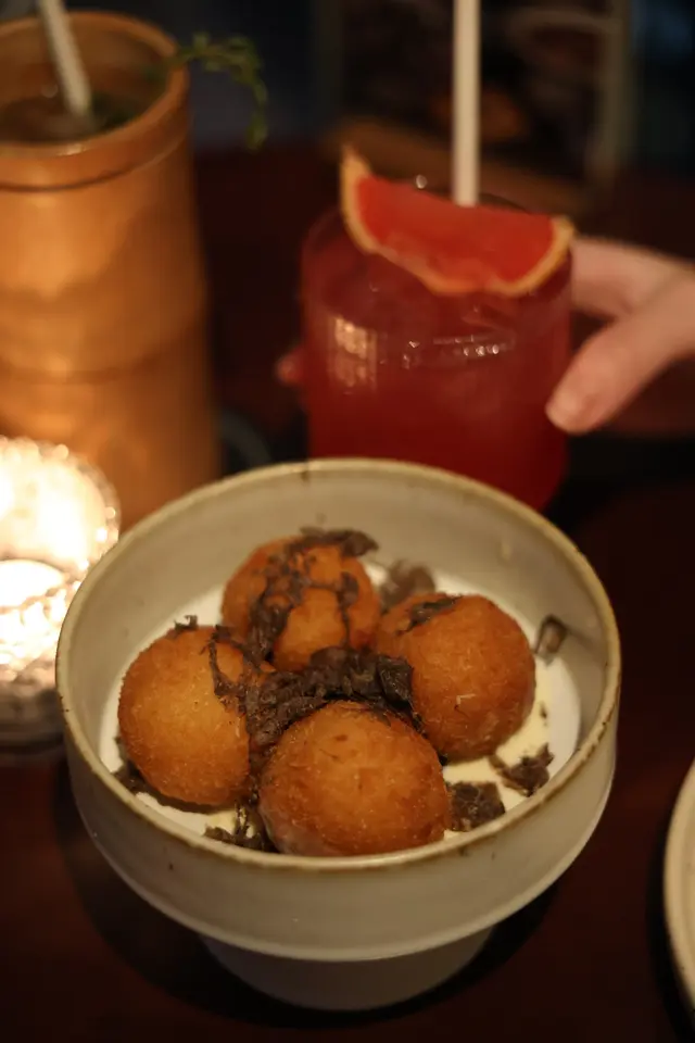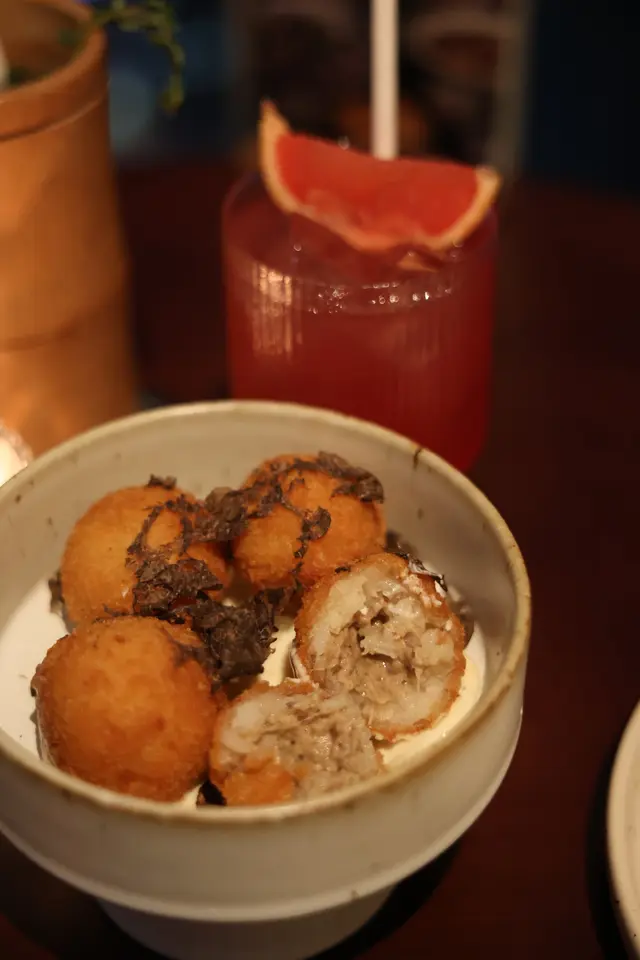 前菜嘅意大利蘑菇炸燉飯丸子都炸得好香口好食!
