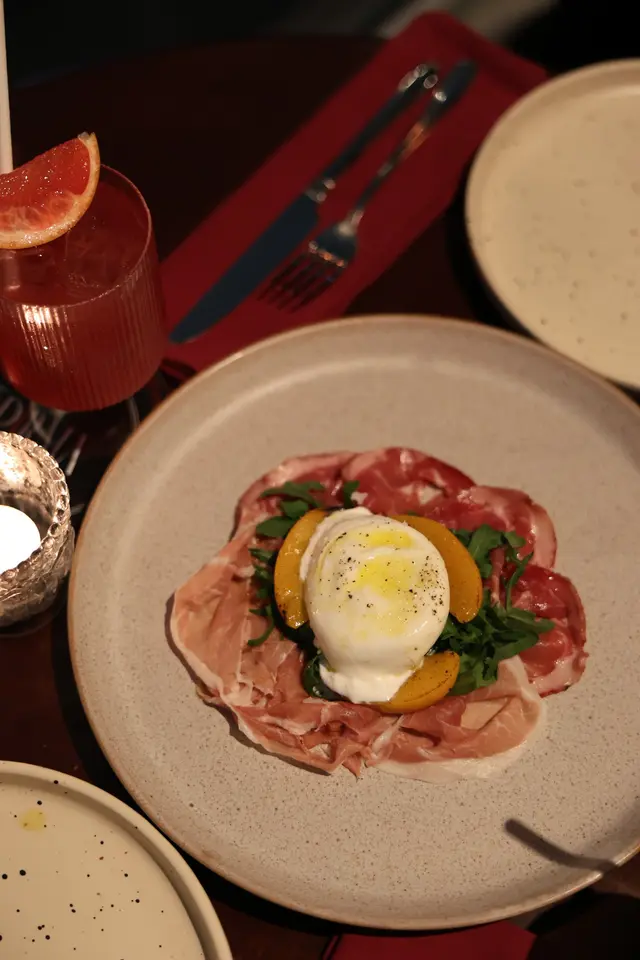 清甜嘅蜜桃配埋Burrata cheese 同兩款 ham,食落好夾!