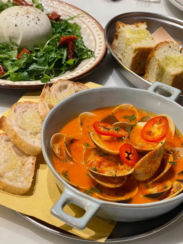 與平時食開的白酒煮蜆完全不同風味,這裏用上新鮮的蜆、白酒、奶油、煙熏辣椒,味道帶點香辣好惹味,醬汁可以伴上多士,非常好味