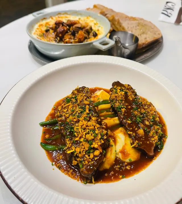 用上穀飼牛臉頰肉,燉著得軟腍入味,醬汁用牛肉汁煮成,充滿牛肉香,牛肉面層鋪上橙皮碎、香蒜、細蔥,口感豐富,底部的薯蓉好香滑和法式豆充滿牛油香,吸收咗牛肉醬汁更加好食