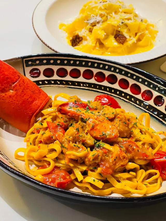 好喜歡這個面條的質感,一樣係充滿彈性,配上爽口彈牙既波士頓龍蝦肉、櫻桃番茄、香茜、檸檬皮,醬汁是用龍蝦頭熬成汁再配合其他調味料再煮,非常濃香的濃蝦蒜香味道,與所有材料非常之夾,好味得一滴汁也不能留下