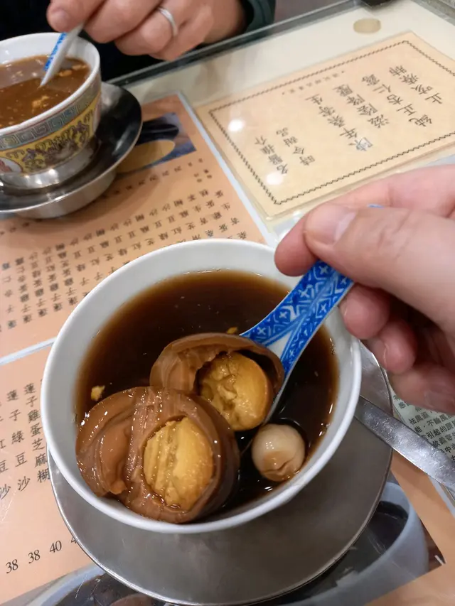 甜品,難得在12月19日,特區政府推行,免費乘搭公共巴士措施,就籍此難得機會,到此店食好嘢喇喂,老實講,自從由198O年開始,初嚐此碗桑寄生蓮子旦茶,感覺驚為天人外,呢幾拾年比店呢碗出品客就越來越差,但價錢就越來越貴,但話雖如此,雖然此店嘅桑寄生蓮子旦茶,質素大不如前,但市面上卻揾吾到一碗,比佢更強嘅同一食品,尤其是隻旦,更係人間妙品,別間