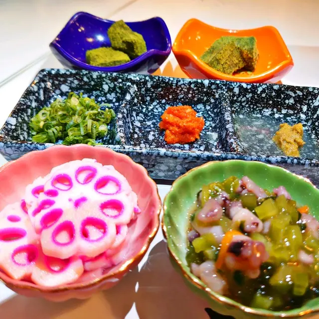 👉 呢份真係超抵食,足足有八大件, 表面鋪上大量木魚碎, 而中間 餡料為三文魚、青瓜絲同埋炸米粉脆脆, 層次感十分豐富, 加上香芒或芥末醬帶來清新嘅感覺。