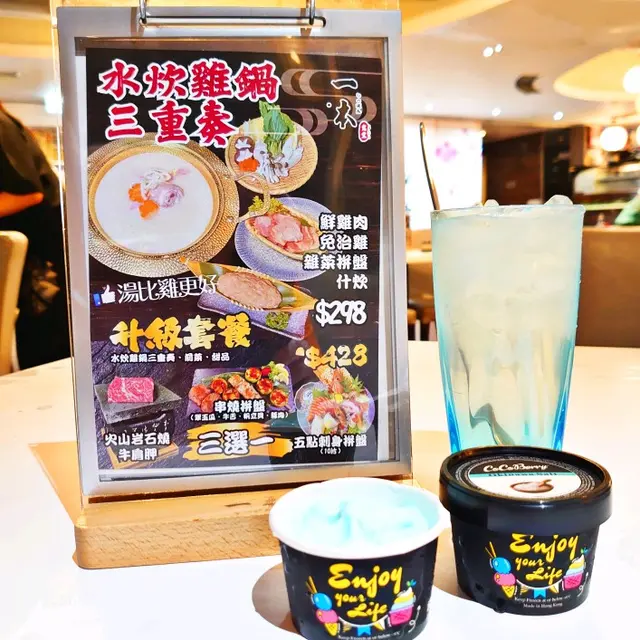 👉 套餐有齊前菜、鮮雞肉、免治雞件、雜菜拼盤、什炊、甜品,水炊雞窩為日本九州福岡名物, 香港比較少地方食到, 呢度有當然要試一下,水炊雞鍋由員工即席烹煮, 我哋只需要睇員工表演就可以😆, 唔使自己煮,雞鍋分多個步驟, 可以飲到由淡至濃嘅雞湯, 第一個步驟係先煮鮮雞肉再飲湯, 第二個步驟就係煮免治雞件再飲湯,之後就煮雜菜拼盤, 最後加上粥底,就係飲到最濃郁嘅鮮雞精華,鮮雞件採用新鮮三黄雞,雞味尤其濃郁, 蘊含豐富嘅黃色雞油,雞件十分滑嫩。