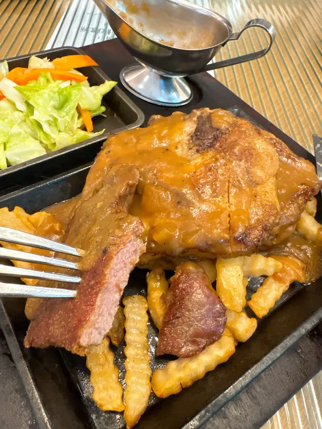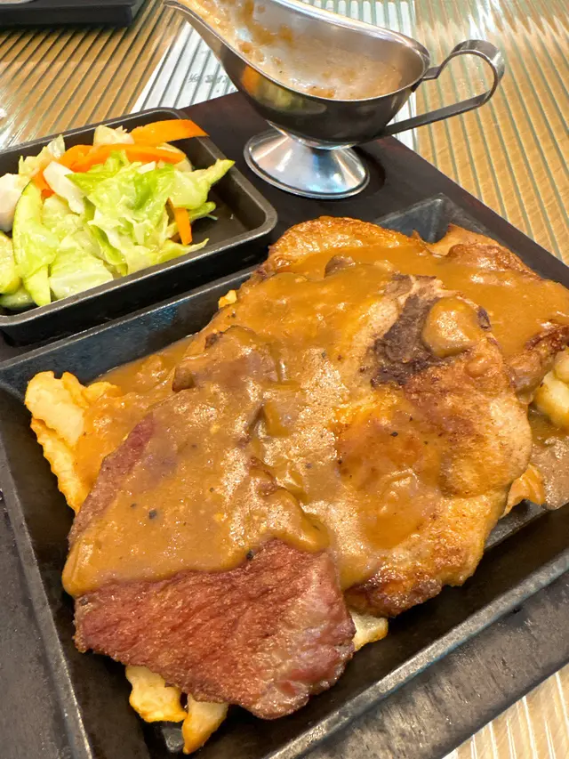 見到好多枱客人都食鐵板餐,仲要係沙田分店先有,一定要試吓🤪,一上枱有啲嚇親,雜扒份量大大份,而且熱辣辣,啱晒啲食肉獸,呢個價錢性價比相當高,一份鐵板餐有齊牛扒、豬扒同雞扒,仲有雜菜同薯菜,如果嫌唔夠飽可以轉白飯或者意粉🤣,醬汁有得揀永年招牌辣椒汁🥰,跟餐仲有個牛油果薯仔蝦沙律,味道相當唔錯🤓