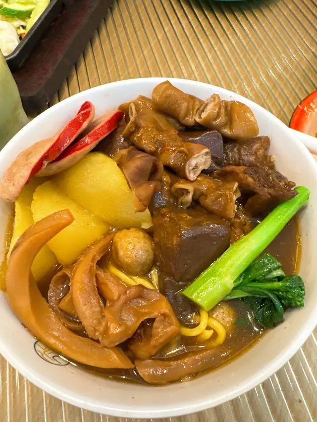 永年嘅車仔麵一向都做得唔錯,今次試咗佢哋個招牌永年大碗麵😋,有成10款配料咁多,啱晒有選擇困難症嘅朋友仔😜,碗麵裏面有豬腸、豬紅、豬皮、雞翼、雞翼尖、咖喱魷魚、紅腸、魚蛋、蘿蔔同時菜,所以碗麵超足料,而且配料相當入味,最鍾意豬腸同豬紅😍,配上招牌永年辣醬,辣得好過癮,麵底揀咗油麵,麵質煮到啱啱好👍🏻