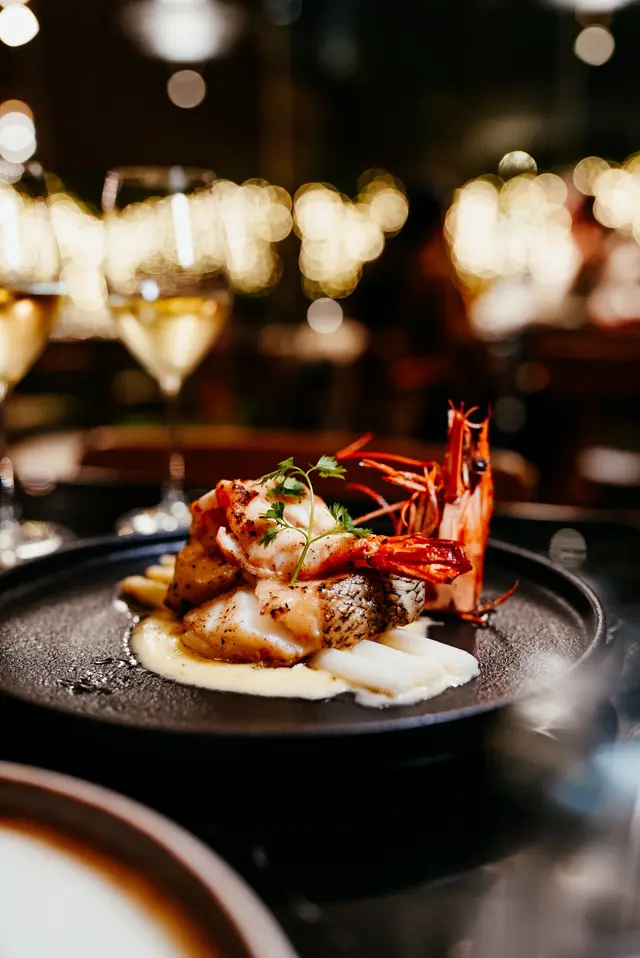 ✦ 烤鱈魚柳及虎蝦配烤新鮮白蘆筍 香檸牛油汁