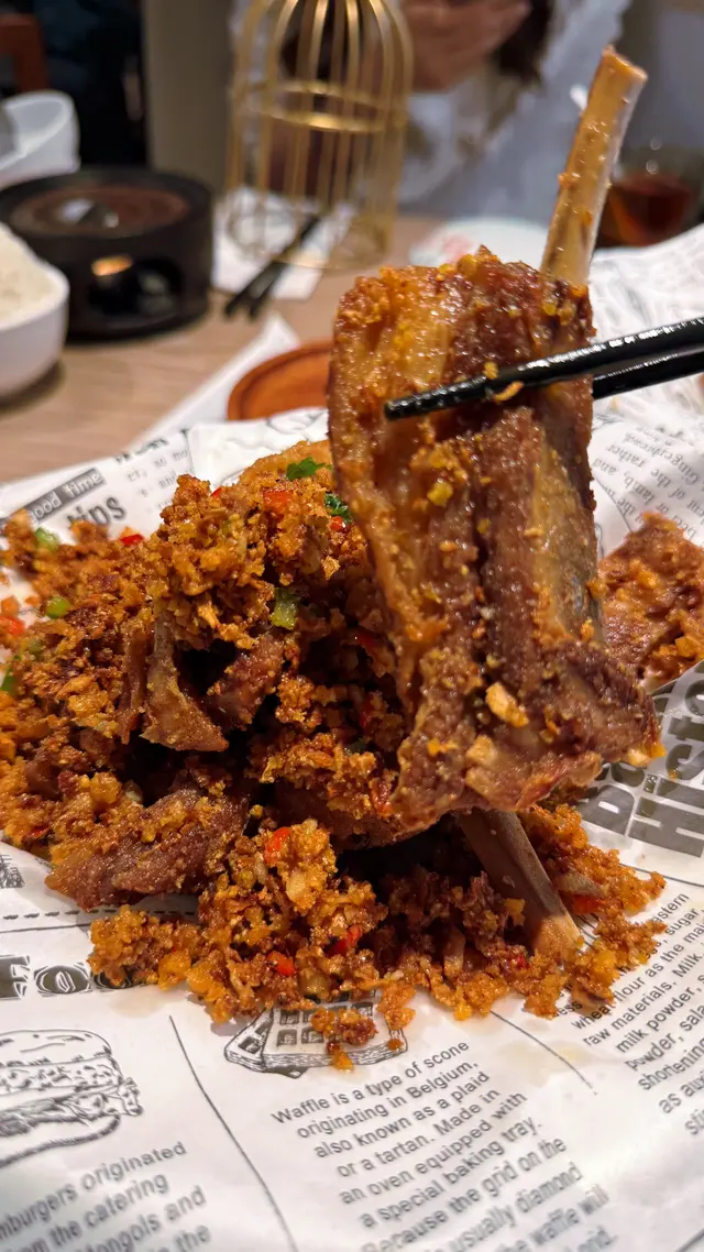 外皮炸得酥脆,裹满孜然香料,羊排肉嫩不膻,啃起来焦香带劲!