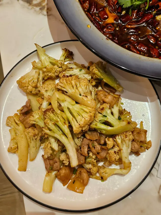 意外的是點了個唔辣的炒花菜,都非常好食,花菜脆脆的,還加了好多五花肉去煸炒,好香好香
