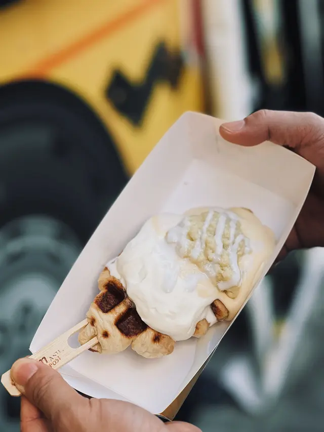 另外又叫左個 D24榴槤牛角包窩夫 ($40) 🥐。個窩夫烘得好鬆脆,咬落去口感好好。重點係窩夫上面放滿左榴槤肉同榴槤蓉,真係好足料!每一啖都充滿濃郁既榴槤香味,配埋熱辣辣既窩夫,真係無得輸🤤。