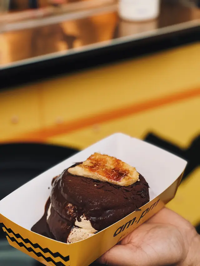 首先叫左個 特濃朱古力香蕉疏乎厘 ($50) 🍫。因為係即場製作,拎上手仲係熱辣辣既!兩塊疏乎厘疊高高,空氣感十足,震騰騰咁。面頭淋上特濃朱古力醬,再加埋朱古力粉同朱古力碎,簡直係朱古力控既天堂。頂部仲有一層焦糖香蕉🍌,脆脆地既焦糖配埋軟綿綿既疏乎厘,入口即溶,正!