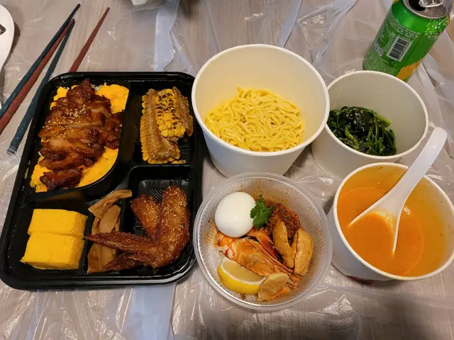 另外仲叫左照燒雞便當$85,蛋卷好味,係粟米燶左少少,加$22配芝麻菠菜及忌廉梳打,但75折埋單$146.2, 好抵食!👍