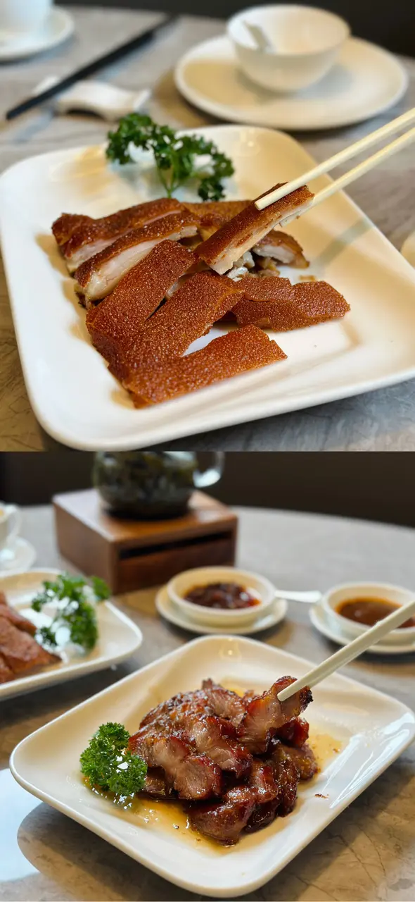 烤乳豬的豬皮超酥脆、肉質鮮嫩多汁,能品嚐到豬肉的香氣和烤豬皮的焦香味
