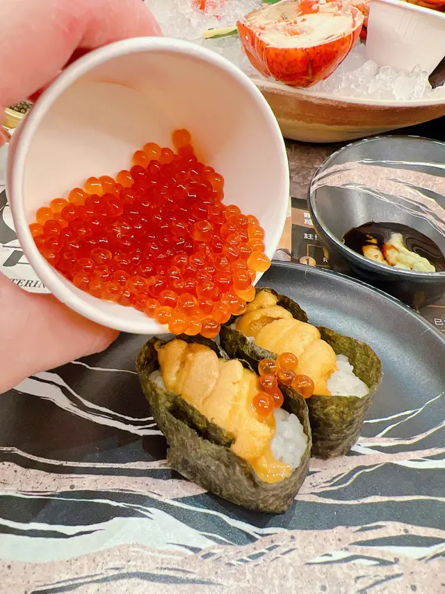 採用日本海膽,甘甜creamy無苦味,軍艦紫菜脆身,我仲DIY加埋大量三文魚子,真係勁正!