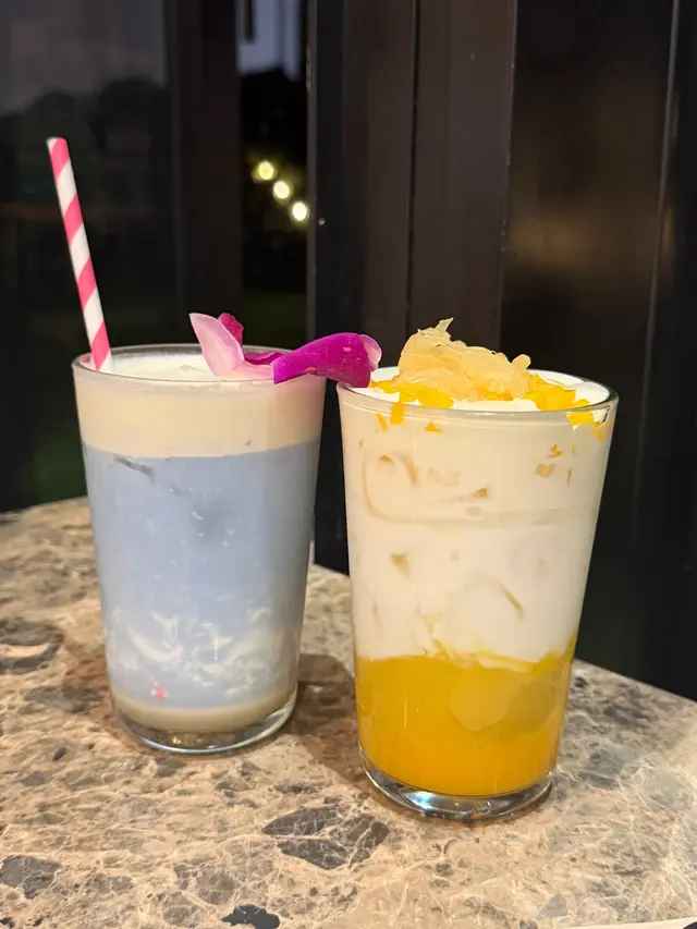 蝶豆花椰子奶蓋:淺藍漸變色也太靚了吧💙!椰子香味好濃🥥,同奶蓋融合得好順滑,清新又解渴~
