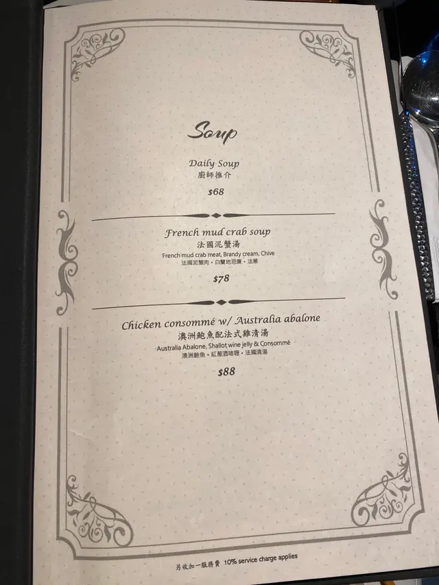 用左法國泥蟹肉 白蘭地忌廉 仲有法蔥熬製而成既濃湯 入口有濃郁既蟹味 非常鮮甜 值得推介