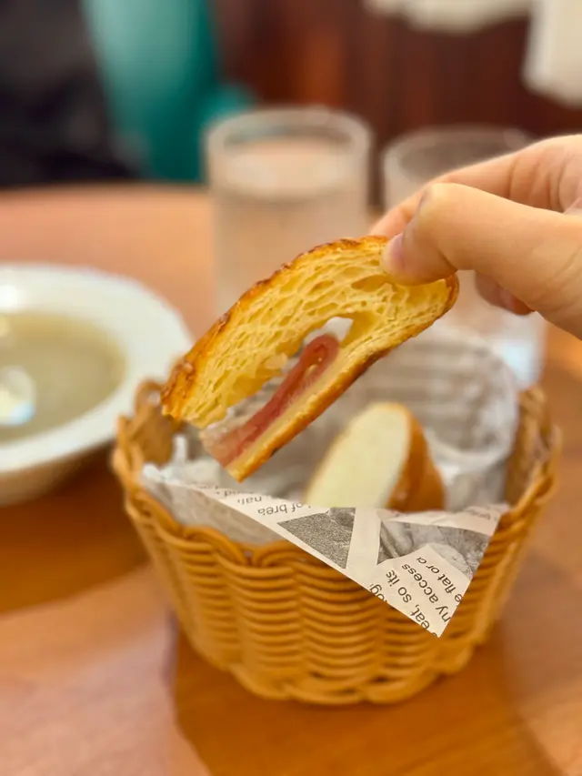 香脆的玉米片沾上超濃郁甘香帶微酸的松露醬,個人很喜歡;煙肉芝士酥酥脆帶牛油香,加上柔軟富鹹香的煙肉及芝士,搭配佳;鹽可頌外酥內軟,帶淡淡奶香與鹹香