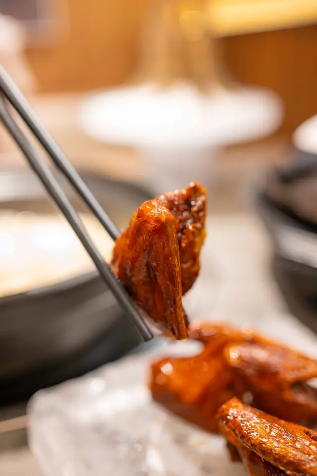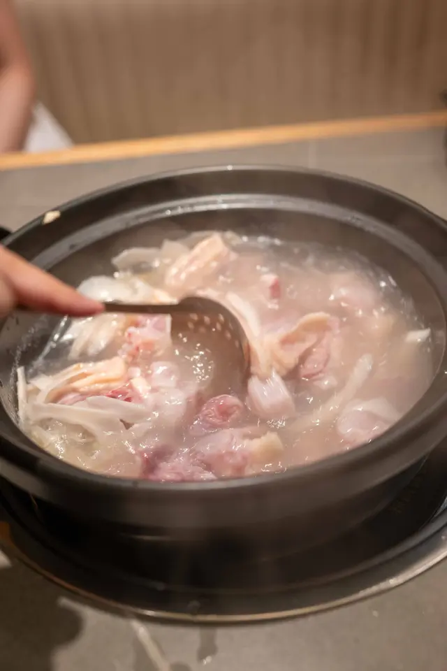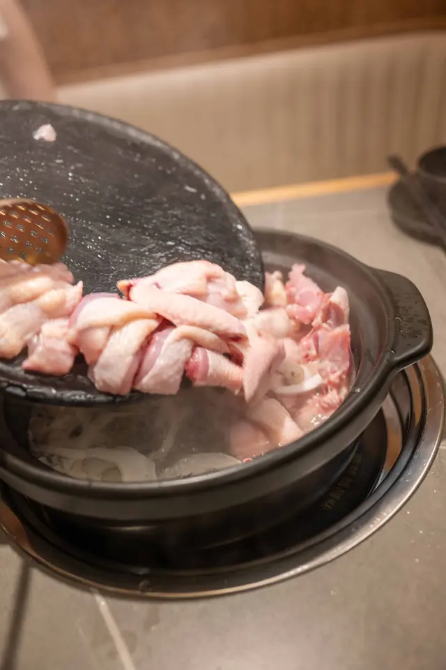 店員哥哥即場開椰青,睇住佢倒晒成隻泰國椰青水落個煲度~湯底滾起嗰陣,加入皮薄肉嫩嘅文昌雞件,煮完個湯清甜到不得了,椰香同雞鮮味完美融合,我同老公飲到一滴都冇剩!🐔❤️ 雞肉真係滑溜得嚟又彈牙,半放養果然唔同啲~