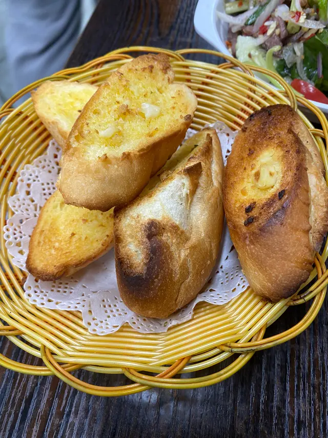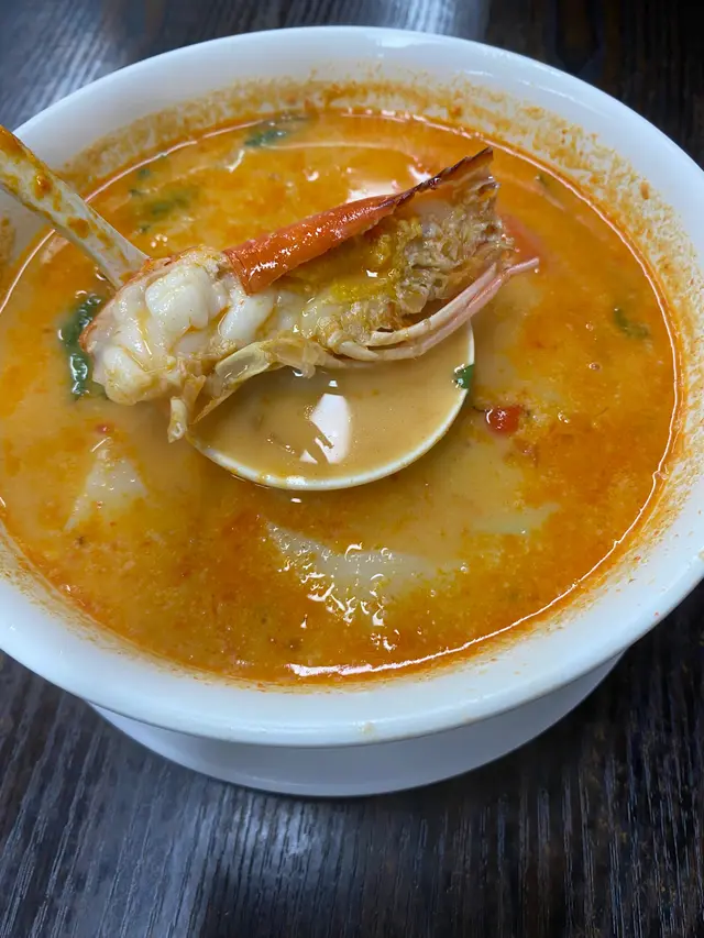 跟住上冬蔭公湯,湯嘅酸辣度好平衡,亦冇過鹹,由於我哋冇點選咖哩嘅食物,但又因為肚餓,所以點了蒜蓉包浸湯吃。蒜蓉包上碟時香氣四溢也很脆,索滿冬蔭公湯又係另一番滋味,酸酸辣辣的包原來好過癮!大蝦蝦肉新鮮彈牙,雜菇和蝦的咬口竟然有點相似,好特別喎!趁熱飲呢個湯,就係最好嘅選擇!