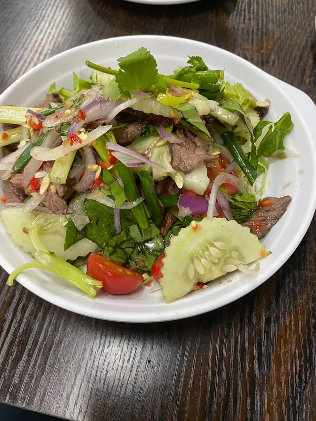一開始食燒牛肉沙律,乾爽新鮮的雜菜,加少許柚子汁,配選料上乘的燒牛肉,美味又開胃!牛肉本身約有八成熟,入口肉汁豐富,咬口極佳!整碟沙律份量唔細,性價比好高!