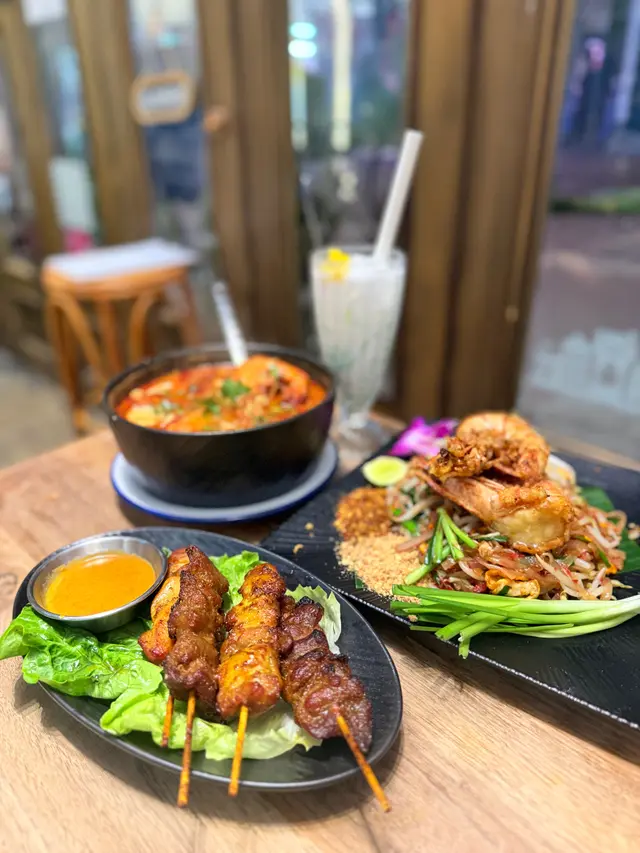 🍲泰菜人氣王 晚市早埋單8折超抵 littlefoodie_bb等級42025-11-27 關注 荃灣曹公坊呢間泰國菜小店係街坊心頭好,裝修簡單清新用綠色植物點綴,感覺有泰國街邊小店氣氛,午市晚市經常排長龍😻。泰國班底主理,味道正宗唔會太辣但層次豐富,份量都幾大,午餐set超抵食,晚市7:30前埋單仲有全單8️⃣折優惠。72⋆˖ ┈︎┈︎┈︎┈┈︎ ᵕ୨♡︎୧ᵕ ┈︎┈︎┈︎┈┈︎ ˖⋆ 🤍🩶𝓦𝓱𝓪𝓽 𝓦𝓮 𝓞𝓻𝓭𝓮𝓻𝓮𝓭🩶🤍 🍲 冬蔭公湯 大大一盤足料,酸辣平衡唔會死辣,香茅椰奶香氣撲鼻,有多隻大蝦彈牙鮮甜及不同的菇菇。湯底清新開胃,一碗夠2人share🍤 大蝦炒金邊粉 兩隻炸脆大蝦飽滿汁多,金邊粉煙韌味道偏甜,份量大到可打包一部份🥢 沙嗲 4串雞豬各半,肉嫩唔乾柴,花生醬汁香濃帶微甜,燒得外焦內嫩🧊 真多冰 冰凍,椰漿香甜,奶香味濃郁,甜度啱啱好 以上食評乃用戶個人意見 , 並不代表OpenRice之觀點。讚好分享🍲泰菜人氣王 晚市早埋單8折超抵 Ann Mamma Thai kitchen by 張秀玲 https://s.openrice.com/QrbT086HV00檢舉 張貼 評分5味道5環境5服務5衛生5抵食用餐途徑堂食