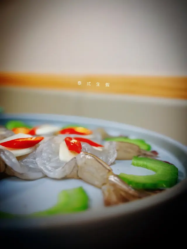 大廚Ah Loong採用肉質彈牙的新鮮游水活海蝦用心製作泰式生蝦