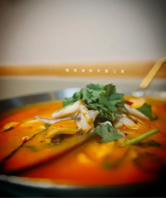 品嚐微辣冬蔭公時更可細嚼到啖啖椰青肉🥥