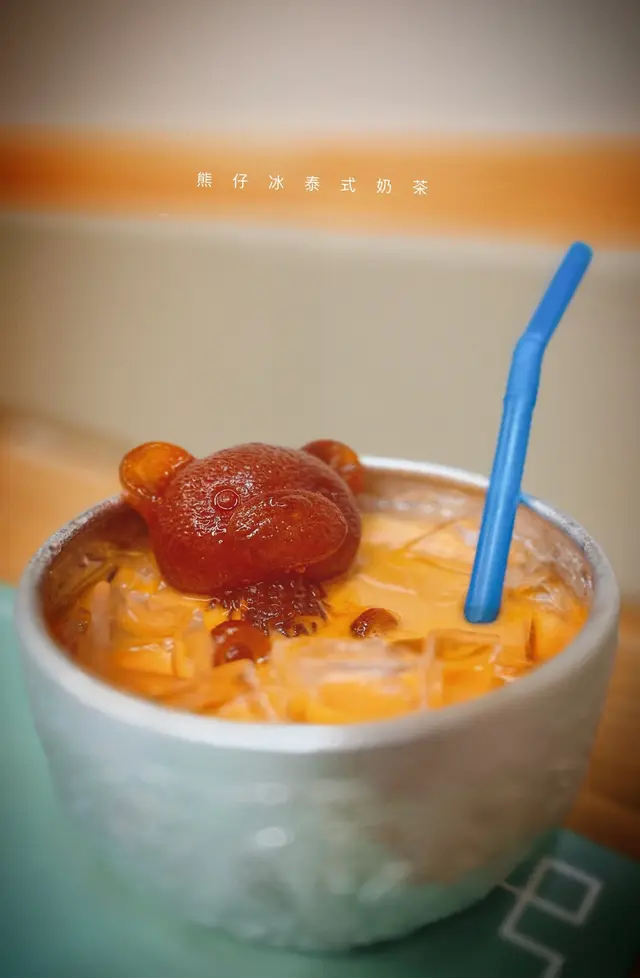 細心留意原來熊仔是泰式奶茶冰磚來的!