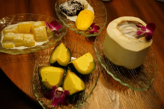 要數最受歡迎的泰式甜品,非芒果糯米飯莫屬!黑白糯米飯微暖,口感煙韌軟糯,淋了椰漿更是香甜。可是芒果肉比較小,而且味道偏酸,令人有點失望……