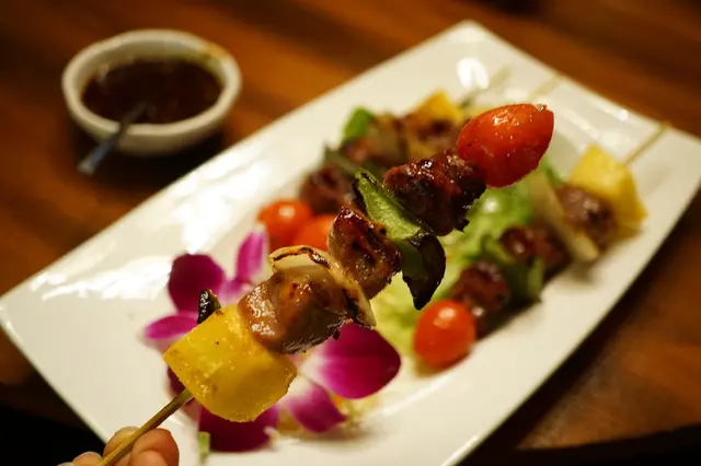 在東南亞餐廳吃到的串燒多是豬/牛/雞肉,羊肉則較少見,這羊肉串色彩繽紛,羊肉粒和番茄、青椒、洋蔥、菠蘿相間,顏色鮮豔奪目。
