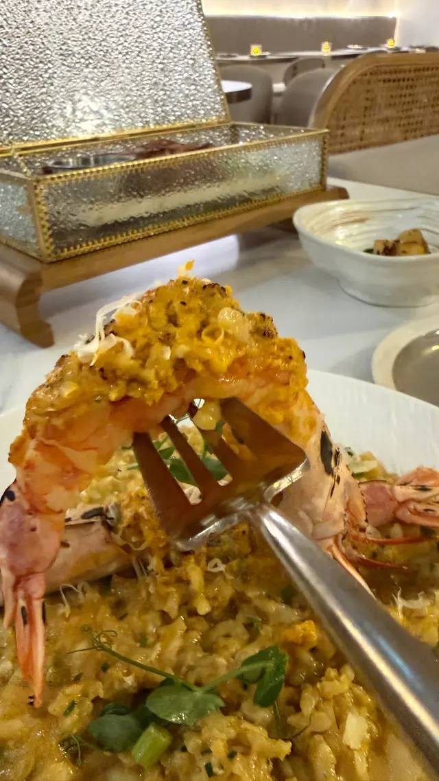 大閘蟹膏意大利飯配刺身紅蝦🦀🦐🍚