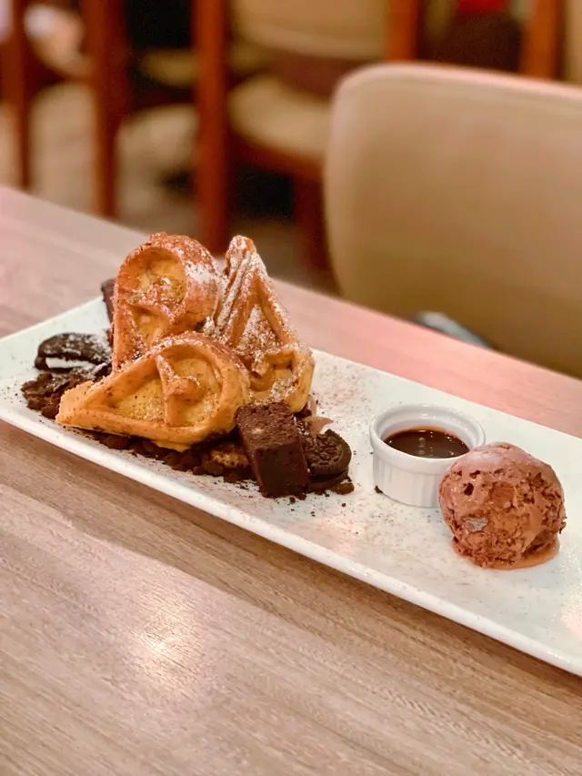 朱古力控必點,窩夫外脆內軟,上面還放了OREO餅碎、朱古力慕絲和朱古力醬,配上冰凍的朱古力雪糕,朱古力味好香濃。