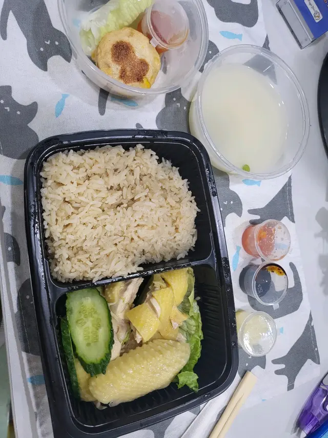 第一個套餐是無骨海南雞飯配墨魚餅,這道菜色香味俱全,海南雞飯肉質鮮嫩多汁,配上香氣四溢的墨魚餅,口感絕佳。搭配一碗清爽的冬瓜湯,清熱解膩,讓整餐更添美味。