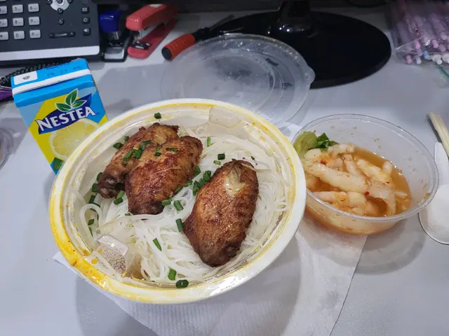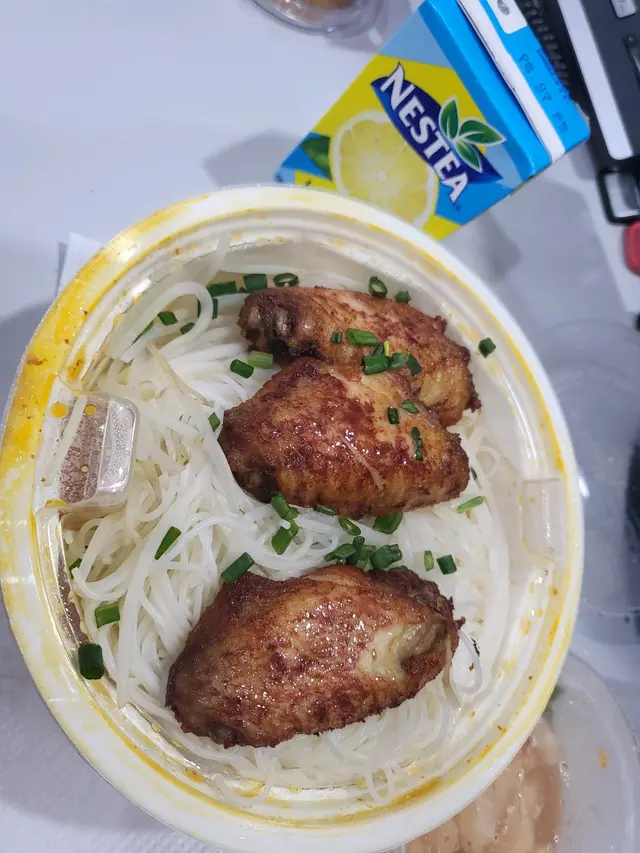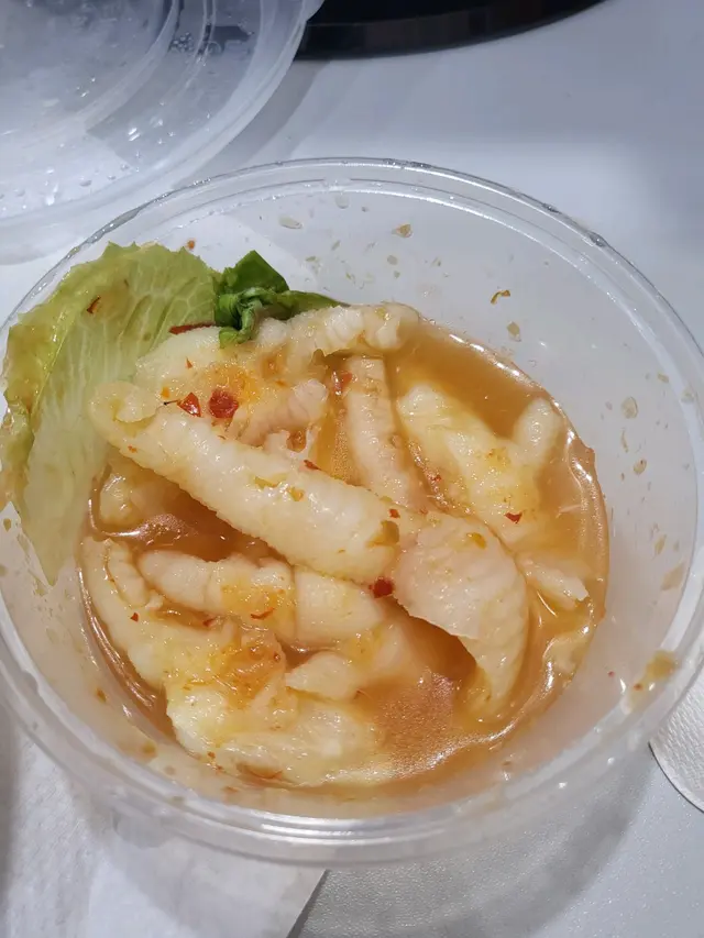 另一個套餐則是南乳雞翼湯米配白雲酸辣鳳爪,這道菜色香味俱全,南乳雞翼湯米熱騰騰的湯汁濃鬱鮮美,搭配白雲酸辣鳳爪,酸辣開胃,回味無窮。最後一口紙包檸檬茶清新怡人,讓整餐更加完美。