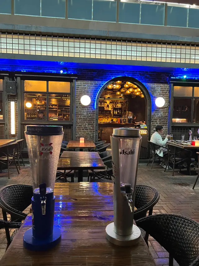 店外嘅枱對住海旁同朋友舉杯暢飲一流
