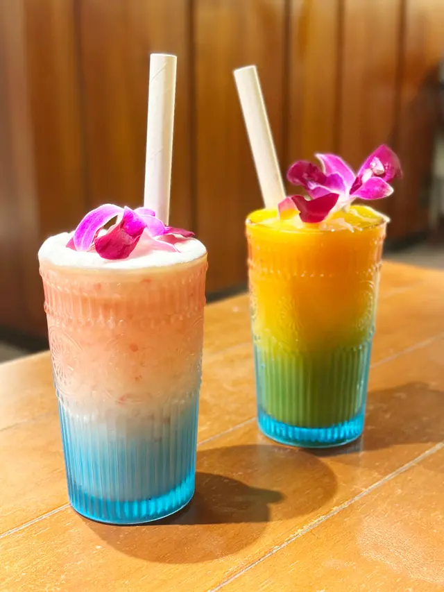 飲品 : 點選咗鮮椰子沙冰及鮮芒果甘露沙冰,賣相色彩繽紛,夠曬泰式風味